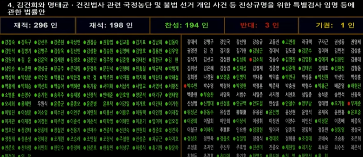 투표 결과: 찬성 194 / 반대 3 / 기권 1 (재석 198)